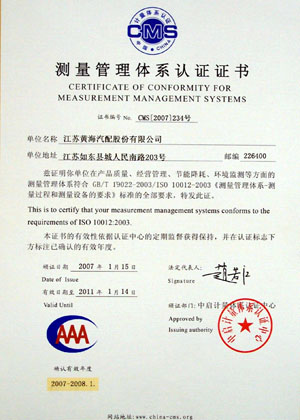 江蘇黃海汽配股份有限公司 江蘇黃海汽配股份有限公司是一家具有中型生產(chǎn)規(guī)模省級(jí)股份制企業(yè),公司享有進(jìn)出口自營(yíng)權(quán),中國(guó)商檢一類企業(yè)…… | |